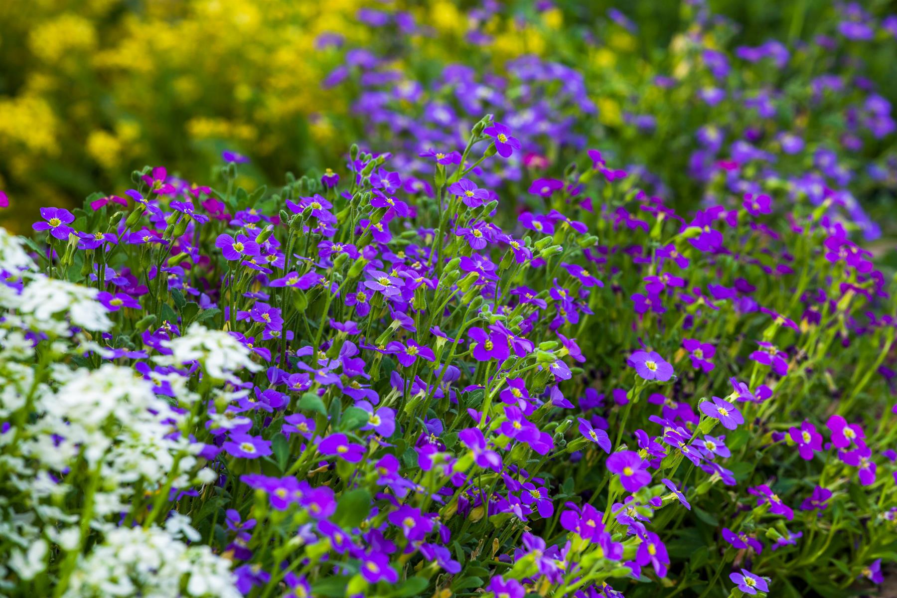 This hardy rockery perennial is an F1 hybrid form of Aubrieta that is very vigorous and uniform. The compact plants produces huge numbers of small blue flowers that will completely obscure the foliage. A must for the rockery or patio pots.