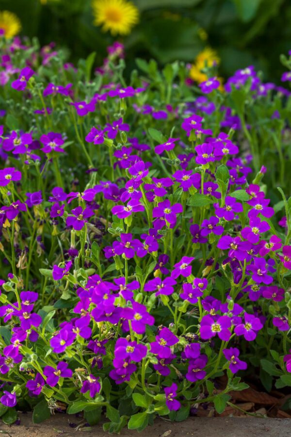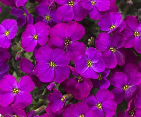 This hardy rockery perennial is an F1 hybrid form of Aubrieta that is very vigorous and uniform. The compact plants produces huge numbers of small purple flowers that will completely obscure the foliage. A must for the rockery or patio pots.