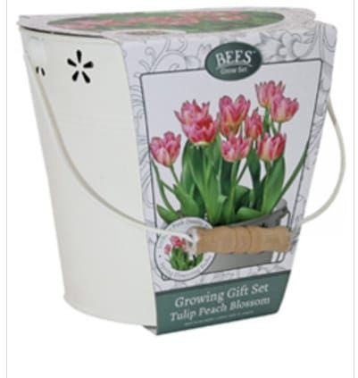 Bees Friends Tulip – Peach Blossom – Bulbs Spring Flower Bucket Growing Kit