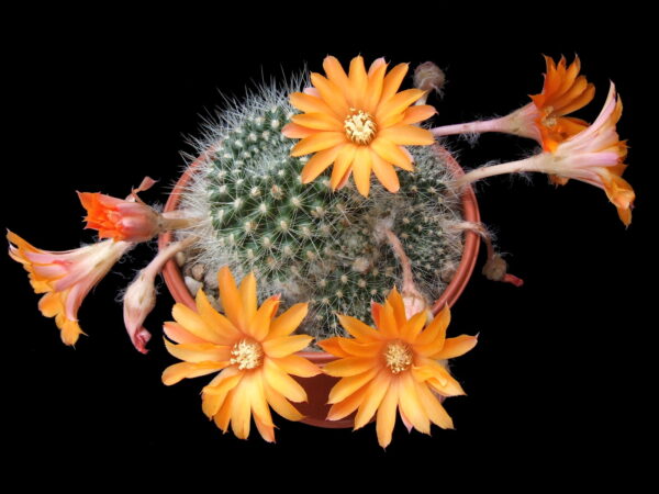 This is a small barrel type cactus. It grows quickly forming clumps. The lovely orange flowers appear from spring through to the summer. This striking variety has incredible bright flowers, a great addition to any collection. The seed has been harvested from Prof Ralph Martins extensive collection.