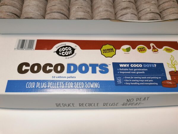 Coconut coir plug pellets for seed growing. Reliable fast germination. Improved root growth. For use in pots and seed trays. PEAT FREE
