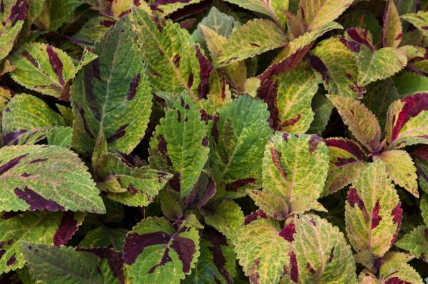 This coleus has a unique mix of mosaic patterns in reds, greens, and yellows. It will tolerate the sun and performs great in the shade. Ideal for beds and pots.