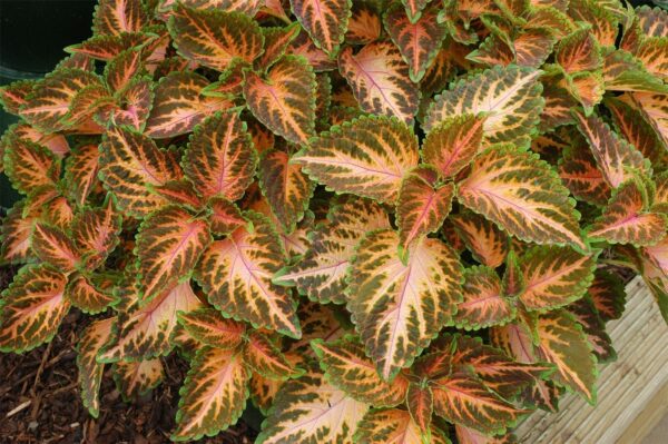 The wizard series is one of the best for Coleus types for growing from seed with its wide range of bright colours. Growing to a height of 20cm this dwarf variety produces many branches without pinching out. This variety has beautiful salmon pink leaves with green edge.