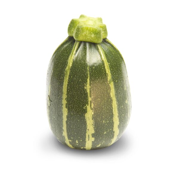 This is a real dual-purpose variety. It produces an abundance of nearly round green striped courgettes which are a great shape for kebabs. These fruits can also be left to rapidly mature into small round marrows which are perfect stuffed. A neat spine-free bush habit makes this variety easy to grow.