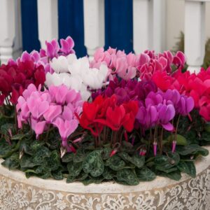 This is a miniature cyclamen ideal for 9-10cm pots that produces a very high number of fragrant flowers per plant. It very tolerant to Botrytis and performs very well outside in winter with proven performance down to minus 8C.