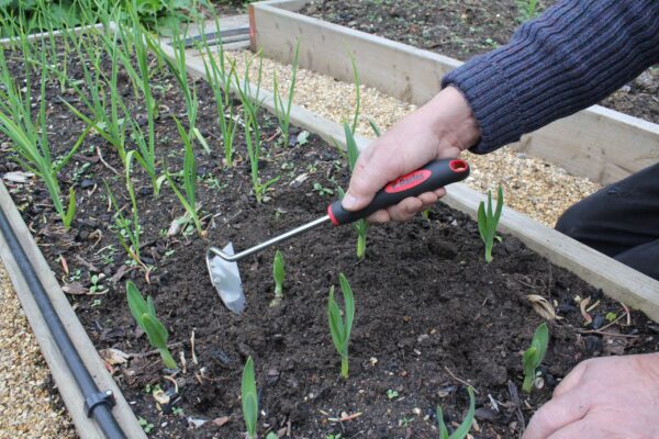 This Onion hoe has a good sharp edge for weeding and hoeing