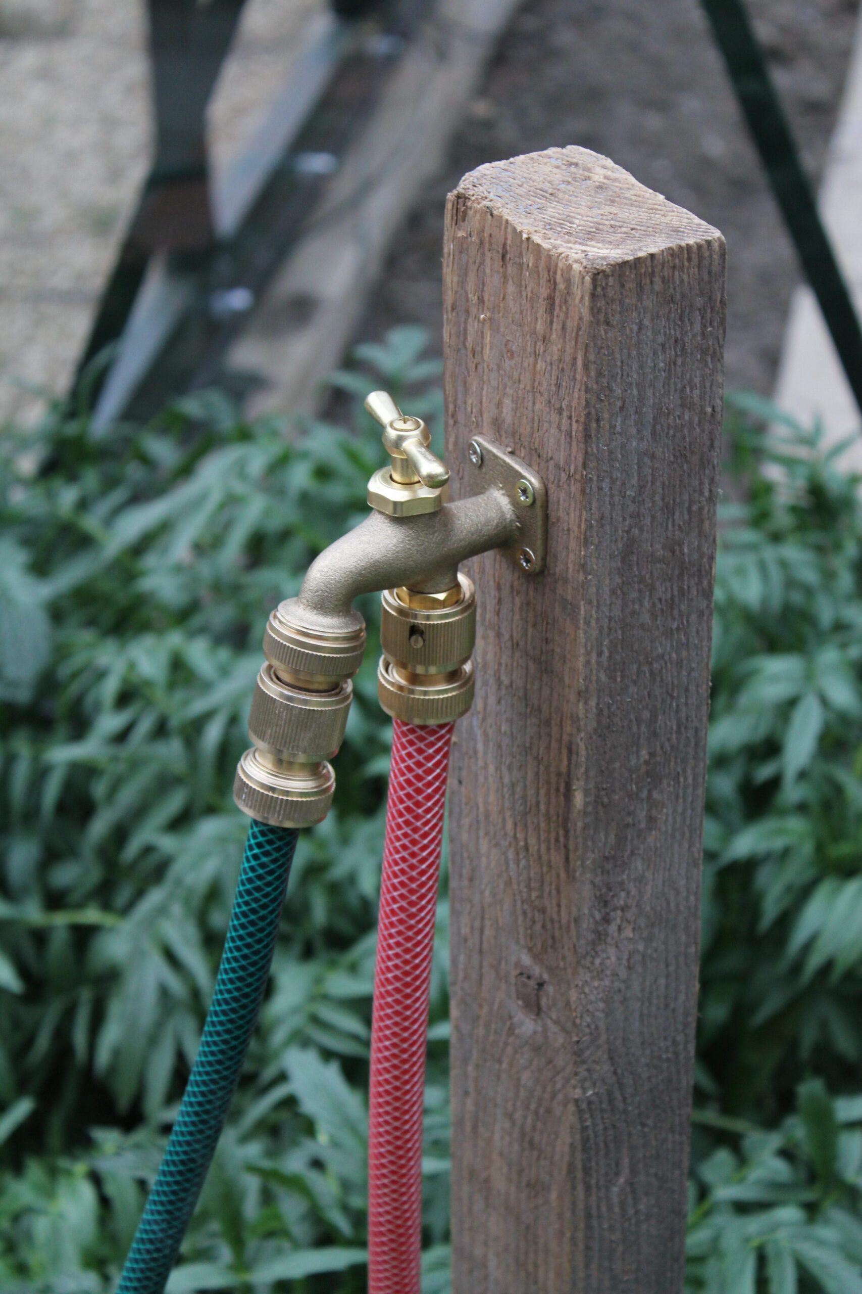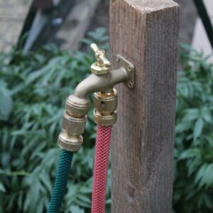 This is made of solid brass. It connects to a standard 1/2 inch hose to all fittings with a male end. Compatible with standard plastic fittings.