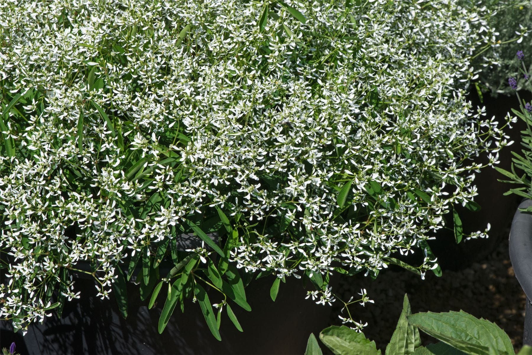 This amazing plant has dark green foliage with lovely small white flowers, grows well in hot conditions. This is an annual ideal for pots and containers Height and spread 38cm. Caution Harmful if eaten