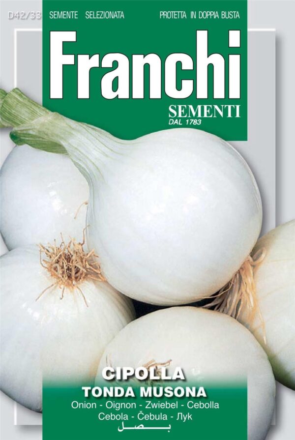 ONION TONDA MUSONA – Mid-early plant with white oval big bulbs. The pulp is white, consist, tender and tasty. Fairly good preservation.