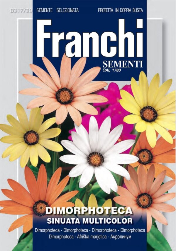 Annual. Easy to grow in patio containers or beds, reaching a height of around 30cm. Produces multi-coloured daisy type flowers and blooms throughout the summer.