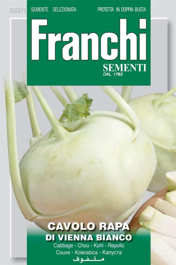 KOHLRABI DI VIENNA BIANCO- mid-early plant with fruits growing out of the ground, round with very consistent white-cream flesh.