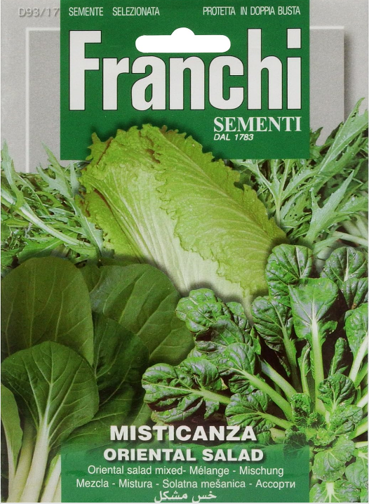 ORIENTAL SALAD MIX – A mix of Chinese brassica varieties chosen for flavour and uniform speed of growth. Ideal for salads and stir frying. Sow in Spring till late summer.
