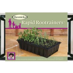 The Rapid Rootrainer is perfect for all bedding and container plants, salads and herbs. Rootrainers encourage vigorous, strong root formation; roots grow straight, avoiding root balls and pot bound plants. Opening the Rootrainer up in a book-like fashion allows for easy inspection of moisture levels and root progress, as well as satisfyingly easy removal of the young plants. Each pack contains: 1 holding tray, 8 books and a clear propagating lid. Plants that excel in Rapid Rootrainers include: Bedding Plants – e.g. Antirinums, Begonias, Bizzie Lizzies, Lobelia Softwood Cuttings – e.g. Chrysanthemums, Geraniums, Fuchsias, Heathers Salads, Radish, Tomatoes Small Herbs – e.g. Chives, Basil Cell depth 8cm (3″) Tray Size Length 36cm (14″) Width 22cm (9″) Depth 9cm (3.5″). Helpful hint: this size is especially good for cuttings