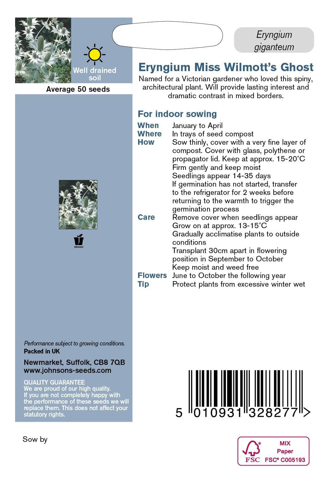 Named for a Victorian gardener who loved this spiny architectural plant. Will provide lasting interest and dramatic contrast in mixed borders. Sow from January to April, full details on packet.