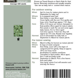 Known as Texsel Greens or Garlic Kale for their flavour. Extremely nutritious and equally versatile. Use as raw as baby-leaf or cook when mature. Sow April to June for mature plants and in September for baby leaf. Full details on packet.