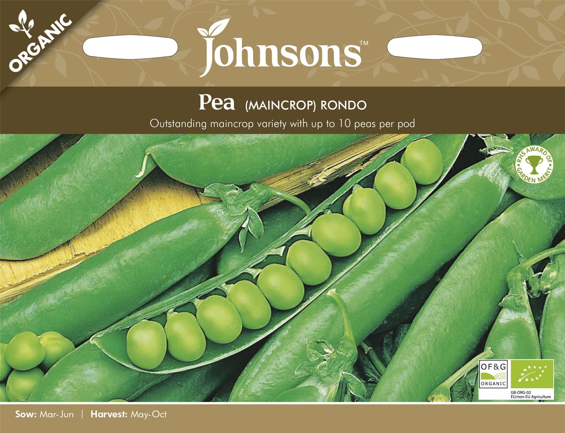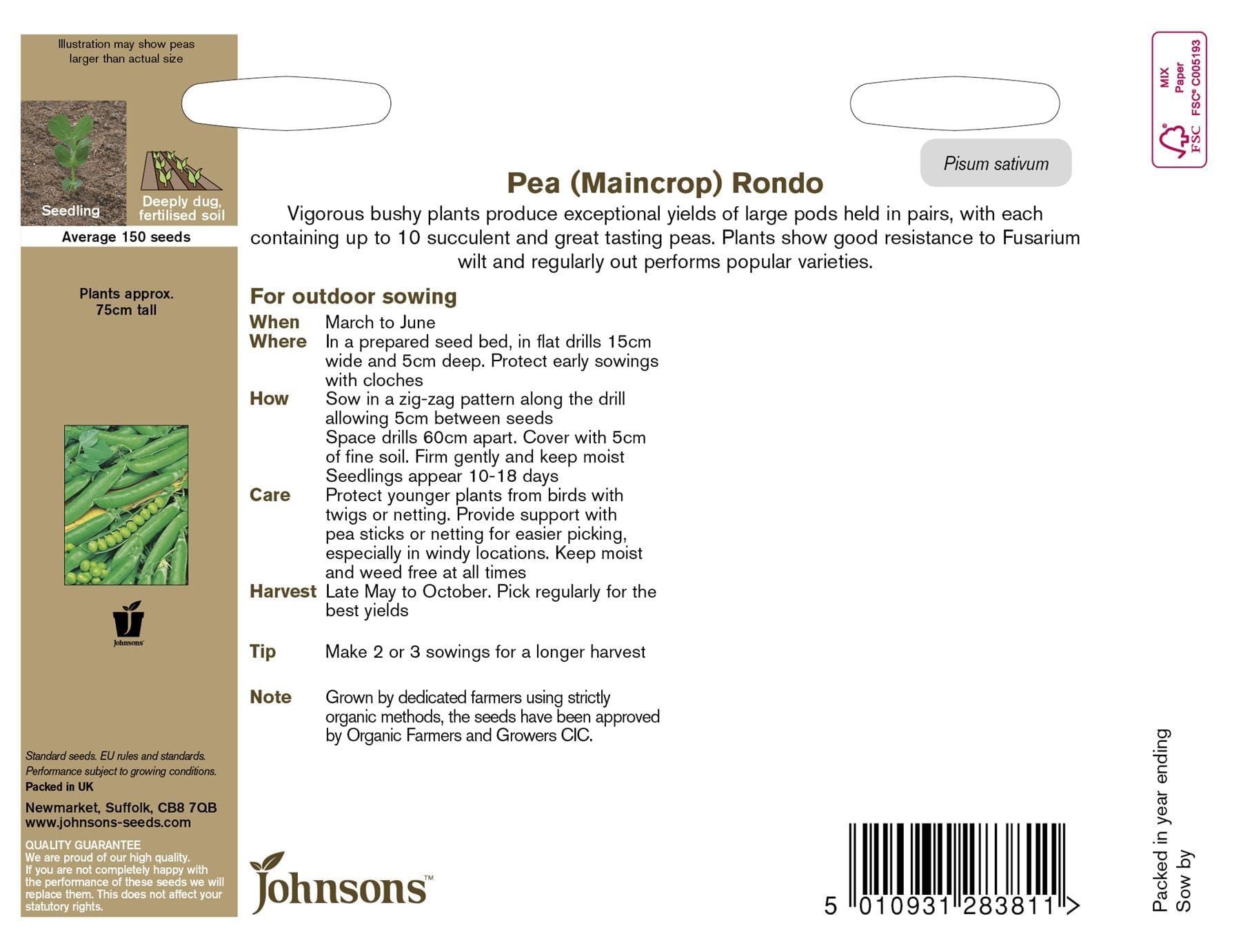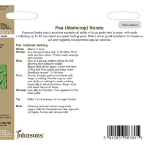 Johnsons Organic Pea Rondo 150 Seeds