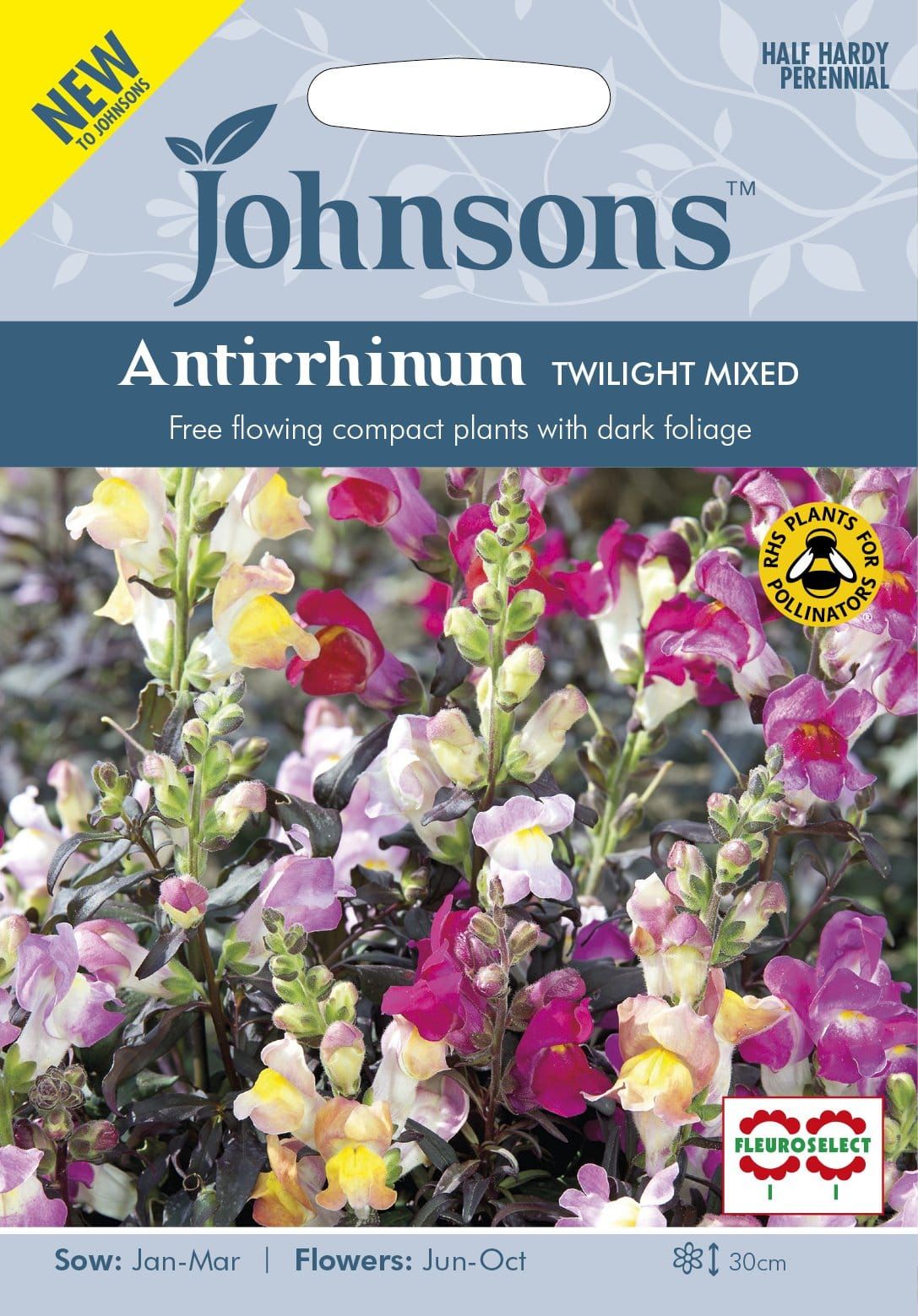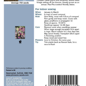 Dwarf plants with attractive, almost black foliage setting off the colourful blooms. Usually grown as an annual. Has Fleuroselect Novelty status.