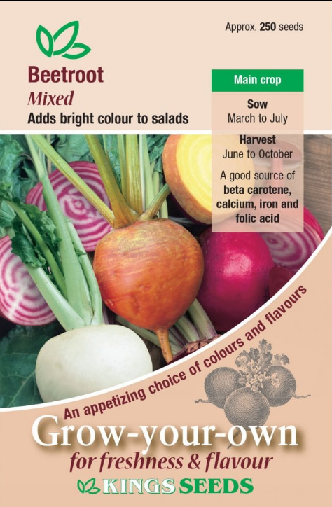 Grow one row and get a mixture of colours, red, white, golden and the unusual pink ringed Chioggia, giving you a variety of colours and flavours for salads.Â