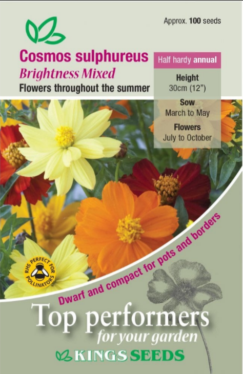 Dwarf floriflorus mixture of gold, lemon, orange and red duplex flowers. Stunning planted en masse in borders or containers. Flowers all summer until the first frost and is attractive to bees.