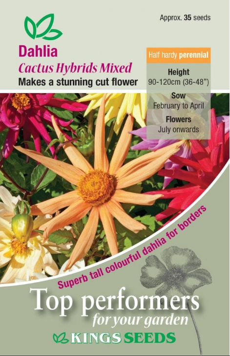 Dwarf, bushy plants with a wide range and a very high percentage of cactus flowered blooms. Ideal for borders or containers. Height 40cm