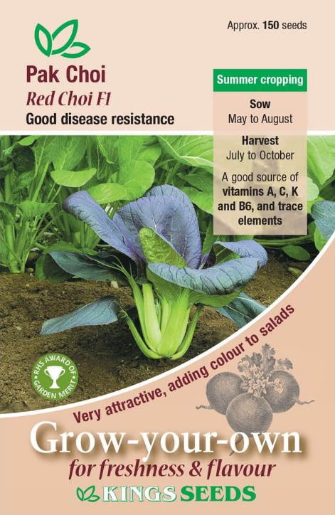 Red Pak Choi produces beautifully flavoured red-tinged leaves as the plant matures and has a good disease resistance. You can break off the leaves as you need them so that the plant continues to grow. Red Pak Choi makes a visually different addition to any salad or stir fry. Pak Choi has been grown in China for about 1500 years. It can be used whole when it grows to about 10cm tall or grown larger so that the individual leaves can be used. Pak Choi can be used raw in salads, but has a more spicy flavour when cooked.
