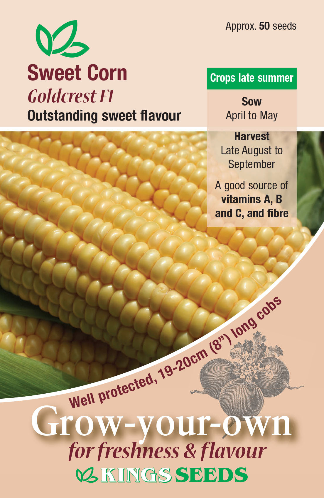 Kings Seeds Sweet Corn Goldcrest F1 – 50 Seeds