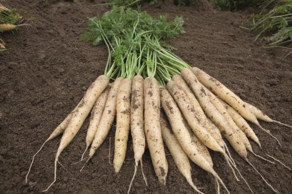 This is an unusual hybrid that produces long slender white roots with juicy texture and crisp sweet flavour.