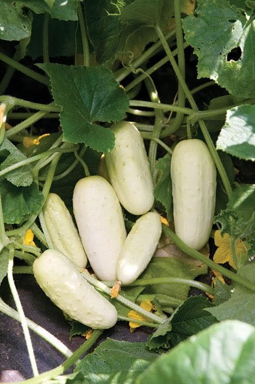 This cucumber is white-skinned with black spines and is suited to use in pickling or salad. It has been developed for improved flavour and resistance to diseases such as powdery mildew.