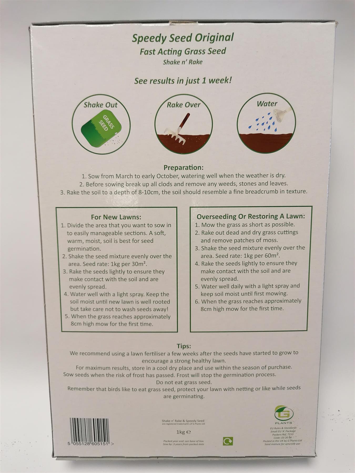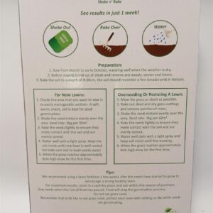 Standard grass seed. 60m sq See results in 7 days. Sow from March till Oct.