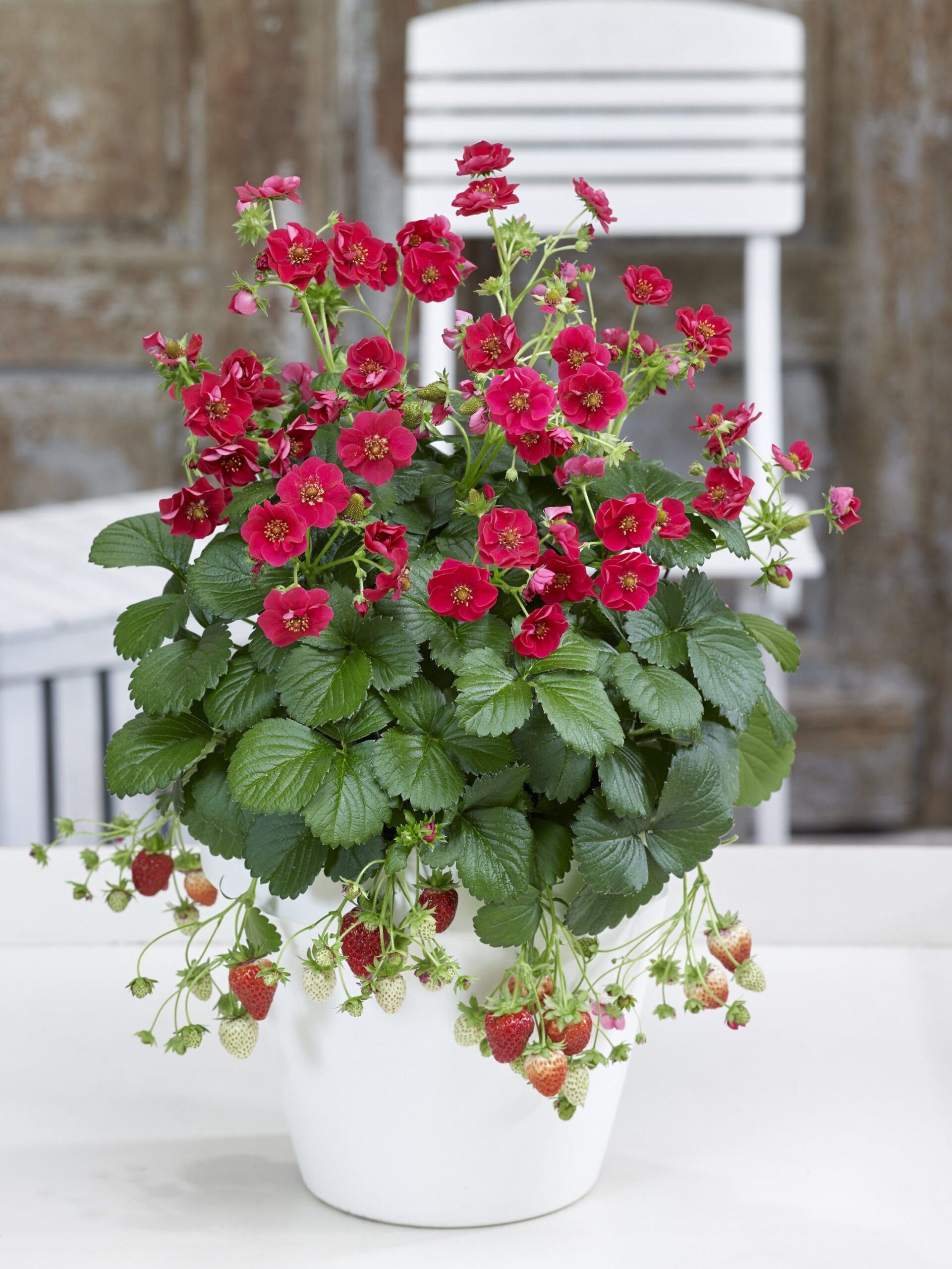 This variety features rose-like double flowers that are real eye-catchers. The double type flowers keep their colour for a considerably longer period of time than the single types do, therefore extending the season of strawberries for the gardener.