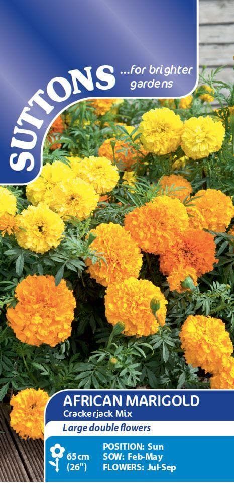 Founded in 1806 Suttons Seeds has become one of the countries best loved brands. When you buy Suttons Seeds you can expect the highest quality seeds that will be in top condition. We are delighted to include the Suttons range among the large range we are offering our customers. This popular item is :Marigold African Seeds – Crackerjack Mix