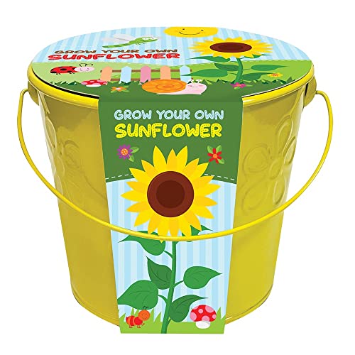 A yellow bucket makes for a great gift and fun project. Teach children how to garden and grow their own flowers. Each kit includes a painted metal bucket, seed packet, peat free growing pellet, and growing instructions.