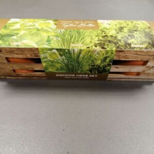 This kit includes the pots. It has the compost and the seeds needed to grow basil, chives and parsley.