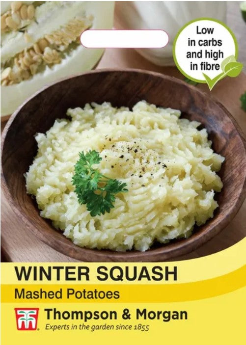 A pale-skinned squash resembling an acorn with delicious white flesh that can be baked, mashed, and seasoned for a low-carb, high-fibre alternative to mashed potatoes! These fruits maintain their colour throughout autumn and have good storage capabilities, making them a perfect addition to the vegetable patch or kitchen garden.