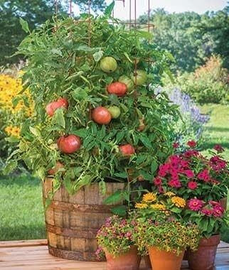Tomato Atlas hybrid produces big, tasty beefsteak tomatoes on vigorous, neatly growing plants that are ideal for porches and decks in warm sunny conditions everywhere. Transplant into 60cm patio tubs or barrels and enjoy huge slices all summer long. It is a determinate type with good disease resistance.