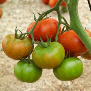 Montenegro RZ Tomato is a beef greenback tomato with that distinctive Mediterranean flavour.  Approximate weight of 230g. The flavour is a balance between  sweetness and acidity, combined with fleshy and firm pulp.The oblate fruits possess an appealing green back with pronounced ribs and shoulders, and are best identified by the-shaped blush at their base. The fruits have a deep red interior, while the exterior transitions from green to pink to red.