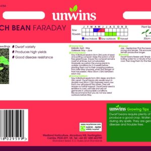 Slender green beans with excellent flavour, dwarf French Bean Faraday produces high yields, shows excellent disease resistance and is particularly suitable for raised containers.