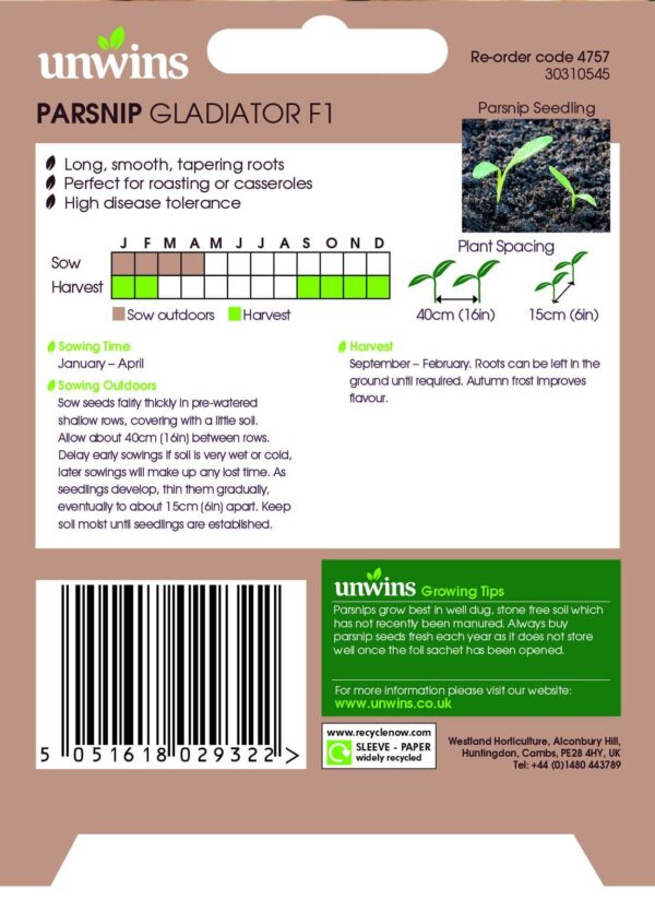 Excellent internal quality and fine flavour to give a parsnip of outstanding worth for the kitchen or on the show bench.