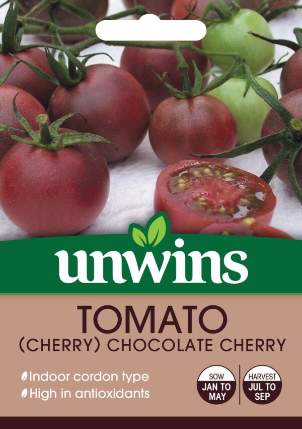 This variety of cherry tomato showcases a beautiful deep chocolate purple coloring, which runs from the skin to the flesh. Its delicious flavor and appealing appearance make it a great addition to summer salads. It grows effortlessly in both greenhouse and garden settings, making it a versatile choice for any home grower.