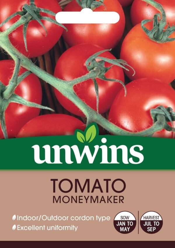 Unwins offer Tomato Moneymaker which has been a long term garden favourite. It can be grown in the greenhouse or the garden where it can be relied on to give a large delicious harvest of medium size fruits. It is an indeterminate variety.